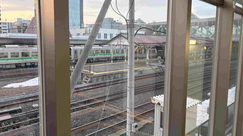 図書館がJR北見駅の連絡通路と直結しているため、駅構内、列車の眺めも良いです。